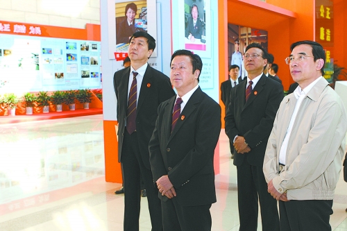 最高人民法院副院长江必新,北京市委副书记、政法委书记王安顺,北京市高级人民法院院长池强陪同视察。(陈志远)