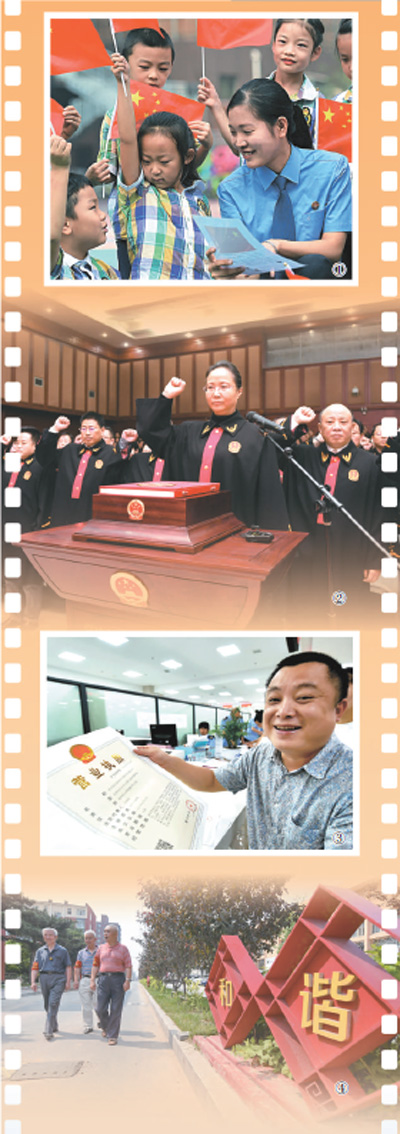 图①:9月30日,河北石家庄市桥西区人民检察院“青年检察官阳光团队”志愿者给小学生讲解《国旗法》。