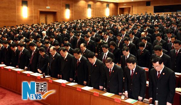 4月21日,参加全国高、中级法院贯彻落实宽严相济刑事政策的1000多名法官在京西宾馆肃立默哀,表达对玉树地震遇难同胞的深切哀悼。新华社记者 姚大伟 摄