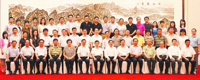 7月26日,做好新形势下政法宣传工作暨《长安》杂志创刊20周年座谈会在京召开。会前,中共中央政治局委员、中央政法委书记孟建柱等领导亲切会见了《长安》杂志社全体工作人员和离退休老同志。(万云 摄)
