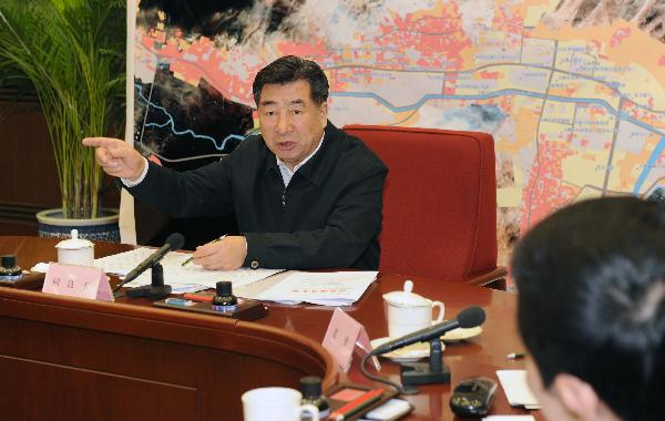 4月21日,中共中央政治局委员、国务院副总理、国务院抗震救灾总指挥部总指挥回良玉在北京主持召开总指挥部第八次全体会议。 (新华社记者:张铎 摄)