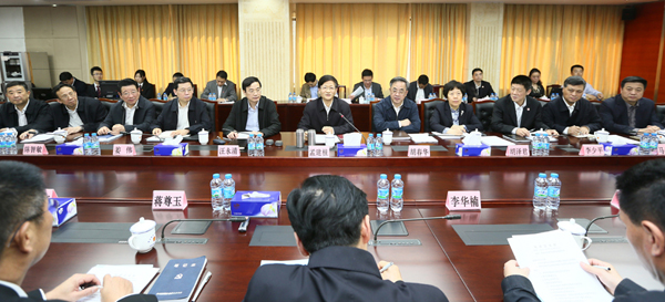 3月24日至27日,中共中央政治局委员、中央政法委书记孟建柱来到广东汕头、深圳调研。图为孟建柱在深圳市福田区人民法院主持召开座谈会。 (摄影 郝帆)