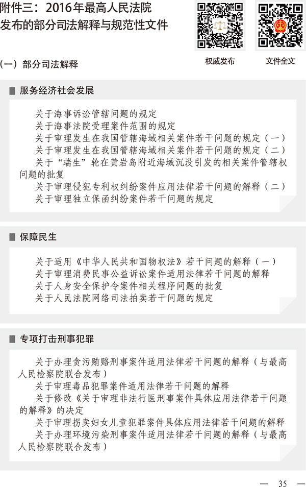 附件三:2016年最高人民法院发布的部分司法解释与规范性文件