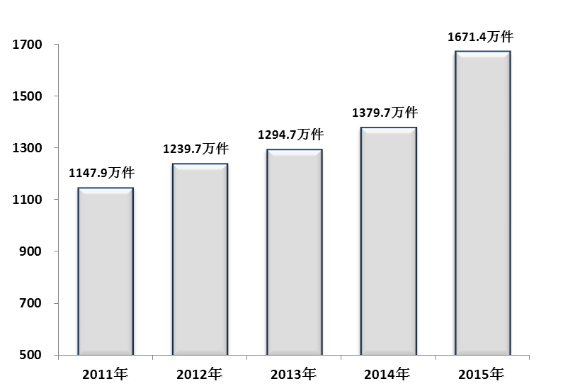2011—2015年人民法院审执结案件数量走势图