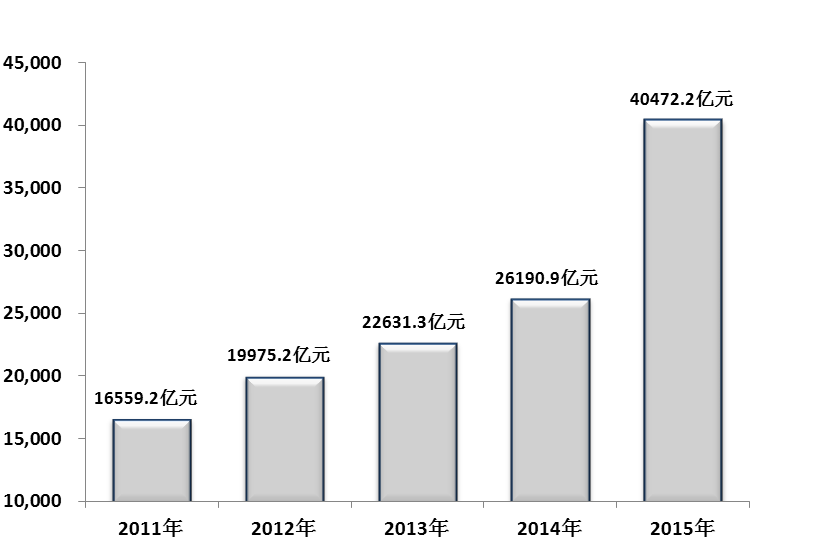 2011—2015年人民法院审执结案件标的额走势图