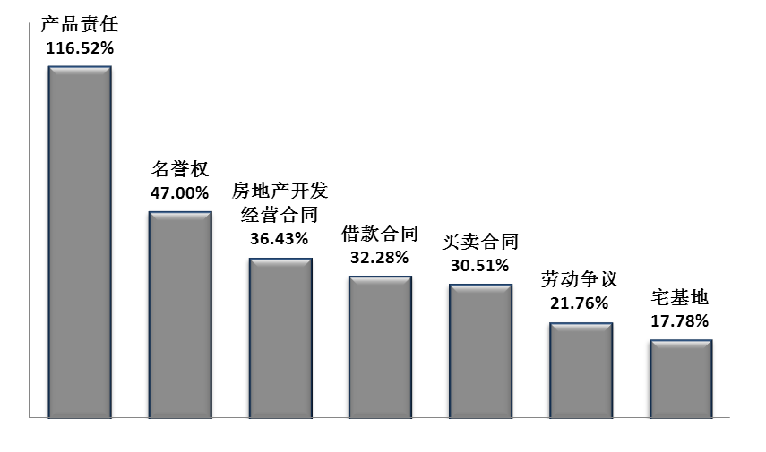 2015年部分一审民事案件增长情况图