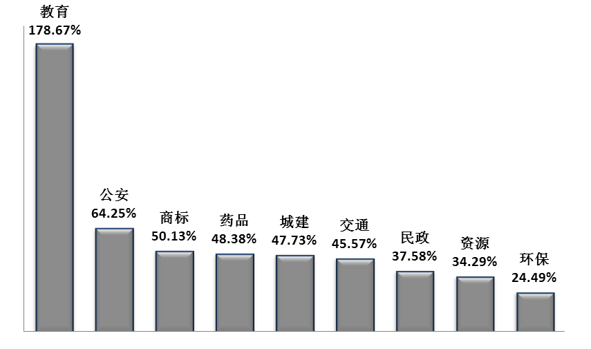 2015年部分一审行政案件增长情况图