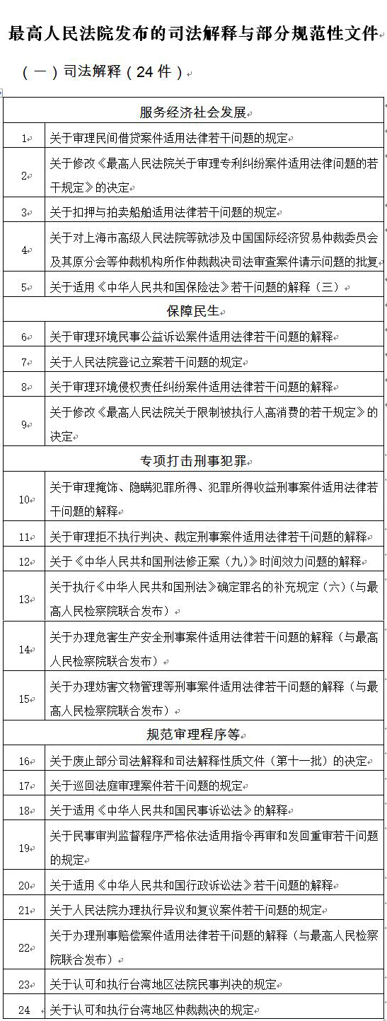附件六:最高人民法院发布的司法解释与部分规范性文件