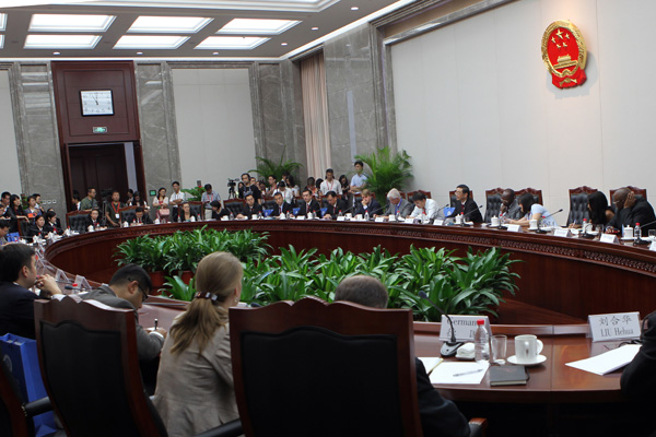8月27日,最高人民法院首次举办面向外国驻华使节的公众开放活动,最高人民法院院长周强会见了16个驻华使馆派出参加活动的使节,并与他们进行了座谈。
