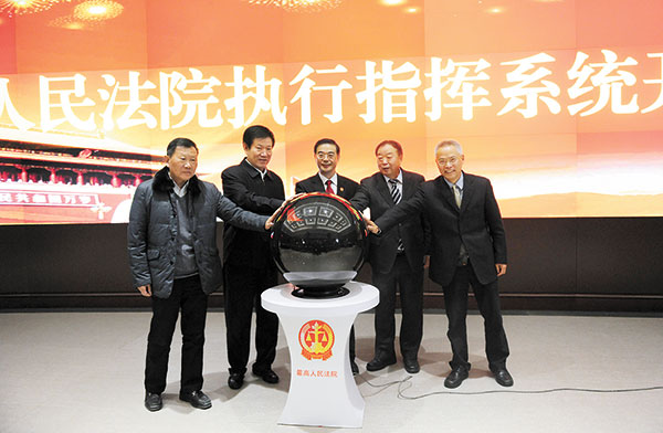活动由最高人民法院副院长江必新主持。在题为《启航》的执行信息化建设专题片播放结束后,周强院长和全国人大常委会委员、法律委员会主任委员乔晓阳,中央政法委副秘书长王其江,全国人大常委会委员、内务司法委员会副主任委员王胜明,全国人大代表王梦恕一起按下水晶球按钮,启动了最高人民法院执行指挥系统。