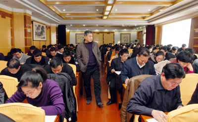 为夯实广大干警的理论基础,进一步提升司法为民的能力、水平,日前,天津蓟县法院举行年度业务考试。除院领导、公勤人员和聘任制法警外,其他干警全部参加。考试题型分为刑事、民事、行政和执行四类,时间两个小时,闭卷进行。同时,该院常务副院长李旭东、政治处主任彭继军、纪检组长郝泽军和监察室主任吴满玉负责监场工作,确保了考场秩序的严肃和考试成绩的真实。