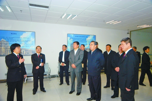 天津市人大常委会主任刘胜玉(前排右二)视察法院工作。