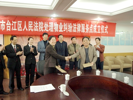 3月30日,福建台江区人民法院在台江区房地产管理局设立全省首家法院物业纠纷法律服务点。近年来,由于旧城改造持续推进,住宅生活小区规模和数量不断扩大等原因,台江法院受理的物业纠纷案件以每年递增20%的速度呈现出持续上升状态,并呈现出类型多样化、群体性明显、敏感程度高、处理难度大等特点。这是台江法院主动回应人民群众对法院工作的新需求、新期待所作的探索。