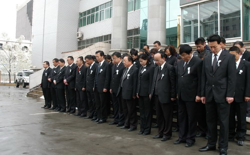 青海省高级法院全体法院法官为玉树地震遇难同胞默哀