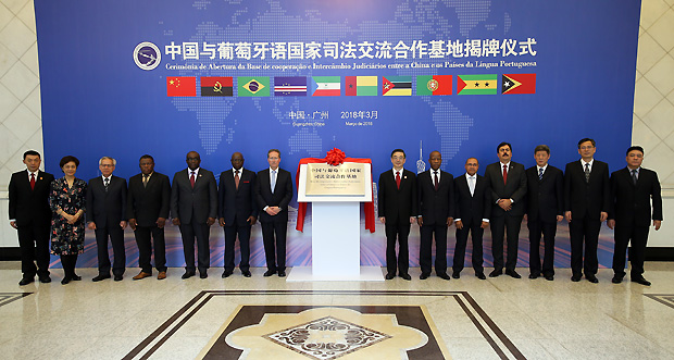 中国与葡萄牙语国家司法交流合作基地3月25日在国家法官学院广东分院揭牌成立,中华人民共和国首席大法官、最高人民法院院长周强出席揭牌活动并致辞强调,要以中国与葡萄牙语国家司法交流合作基地成立为契机,加强培训合作,实现信息互通共享,深化司法交流合作,共同为“一带一路”建设提供有力司法服务和保障,推动中国和葡萄牙语国家友好关系不断发展。