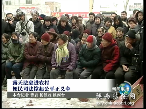 2月21日晚七时许,中央电视台“新闻联播”栏目以“露天法庭进社区,便民司法撑起公平正义伞”为题,以西安市灞桥区法院审理的一起房屋建设劳务款纠纷为例,报道了全国法院司法体制改革和陕西省审判工作“五进”情况。