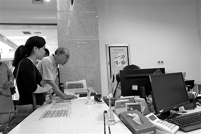 图为办案人员在克拉玛依市行政服务中心了解案涉不动产抵押登记情况。张国锋 摄