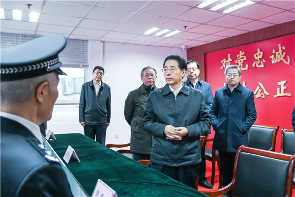 4月5日至8日,中共中央政治局委员、中央政法委书记郭声琨赴山东和海南调研。图为4月5日,郭声琨在山东调研。 王建军 摄