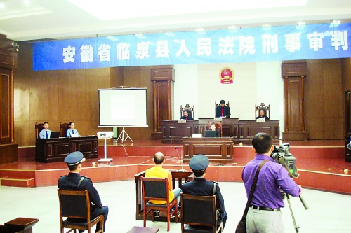 10月8日上午,国庆长假后的第一个工作日,被媒体称之为“全国量刑规范化第一庭”在临泉法院敲响“第一槌”。周瑞平 摄