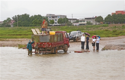 在鄱阳湖边投放鱼苗。